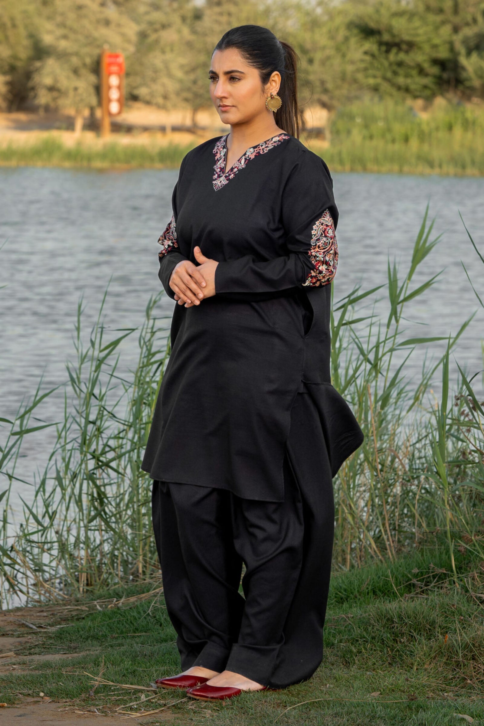 Featuring a beautifully embroidered neckline and delicate motifs on the sleeves, it strikes the perfect balance between tradition and contemporary style.